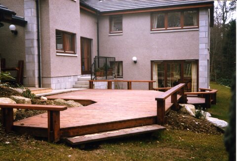 Here is an example of some garden/ exterior joinery decking, which I built to "wrap" around these rockeries and the house.